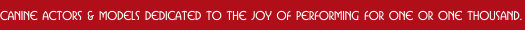"All the world's a stage"...at least to these canines. They love to perform and learn. Please explore their site and discover their many talents, and by all means, if you have a need for a canine actor/model, contact us via email with your number and we'll call to discuss YOUR needs. You won't be disappointed! These dogs can learn just about anything!